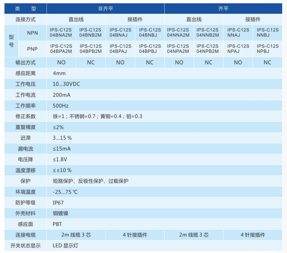 M12非齐平/齐平电感式传感器。