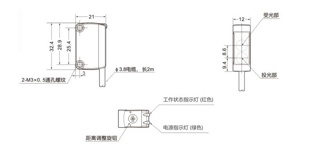漫反射:2.5m; 镜面反射:12m; 对射:30m。