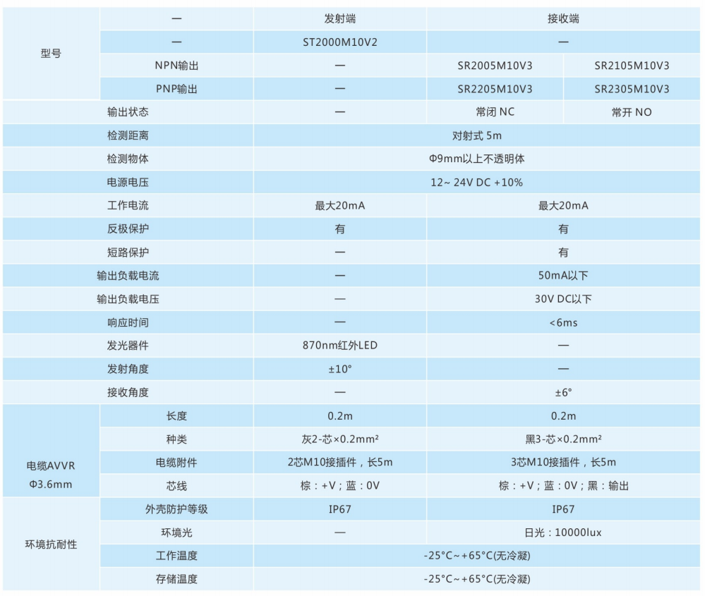 ST2000是法兰式安装,M12,X1小型对射传感器。